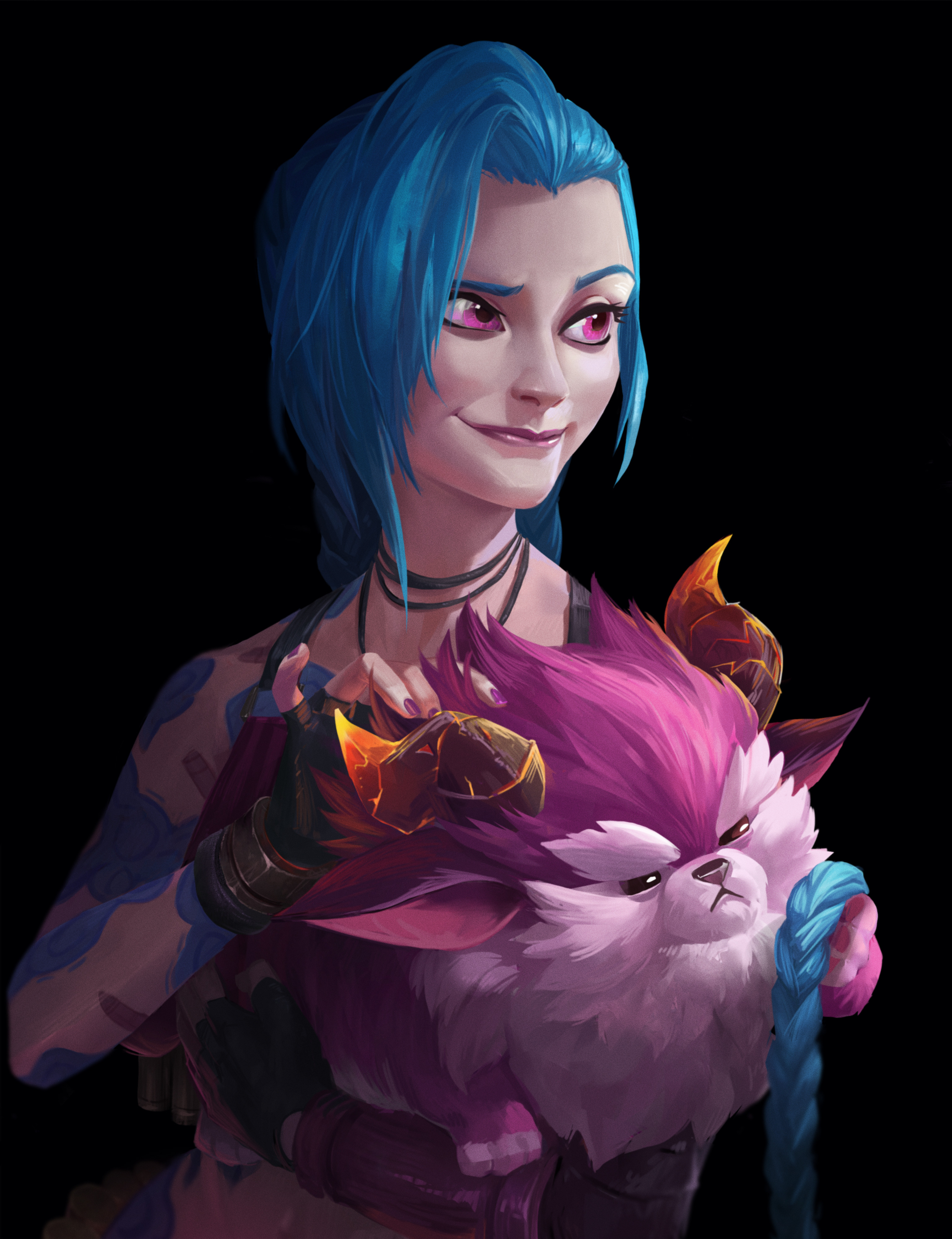 This is my newest piece and it was one that I had plenty of fun with. It was quite the challenging piece but I'm quite happy with it. Although it was inspired by Da Vinci's "Lady with an Ermine," Jinx and her Furyhorn definitely twist the classic aesthetic of the original piece into something more mischievous.